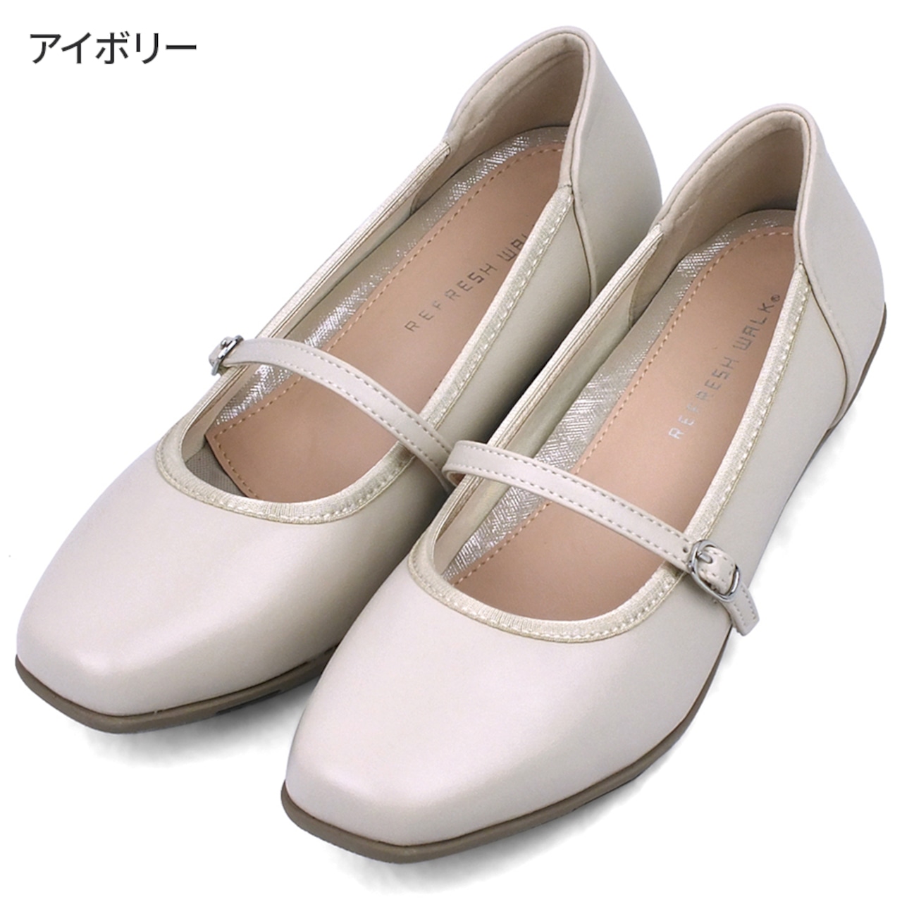 幅広3E設計により、どんな足型にも対応し、2.5cmのヒールは適度な高さで足をサポートします。