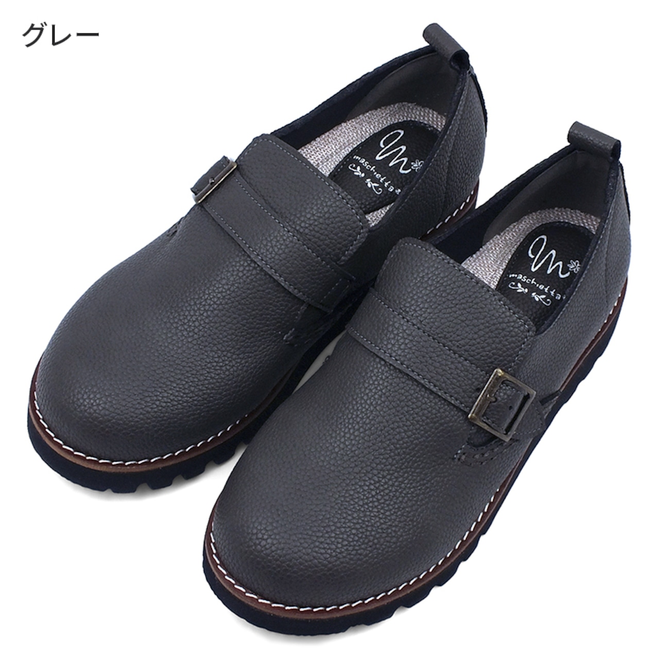 本革調の厚ゲージシボPUで落ち着きのある上品な雰囲気を演出したカジュアルシューズ。