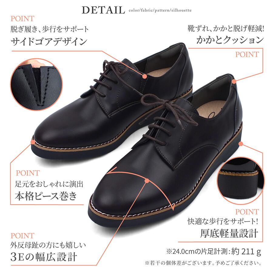 レースアップシューズ マニッシュ 幅広設計 軽量 厚底 コンフォート maschietta