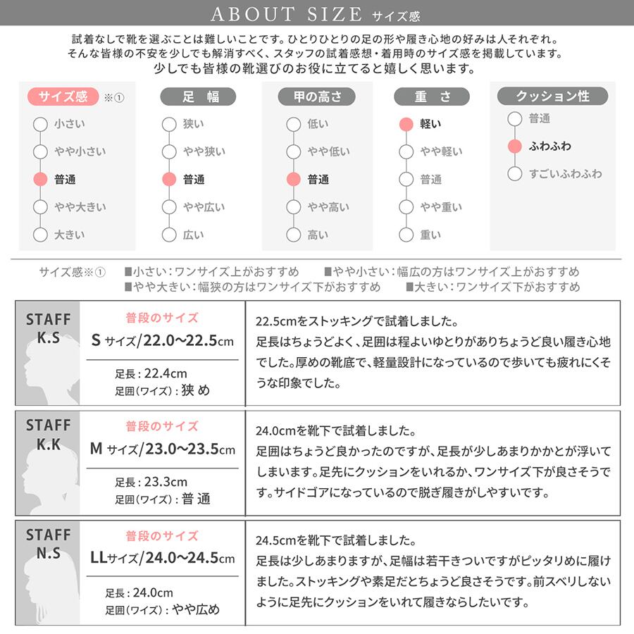 足の形に合わせて厚みを変えたふわふわクッションインソールで疲れにくく、痛くなりにくいです。