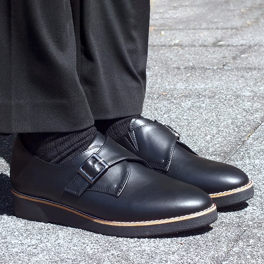 モンクストラップシューズ マニッシュ 幅広設計 軽量 厚底 コンフォート maschietta
