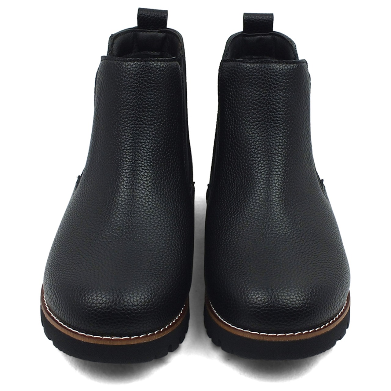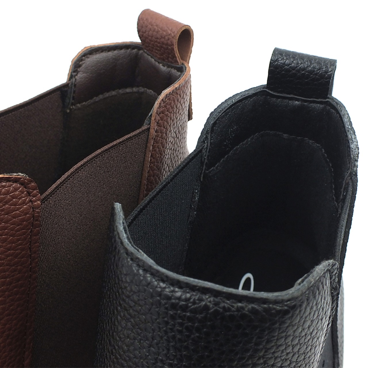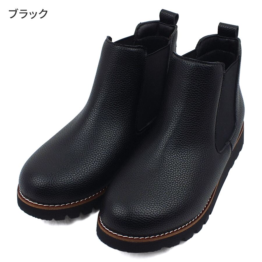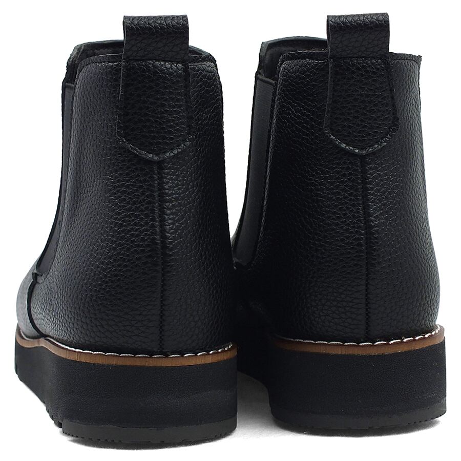 本革調の厚ゲージシボPUで落ち着きのある上品な雰囲気を演出したカジュアルショートブーツ。