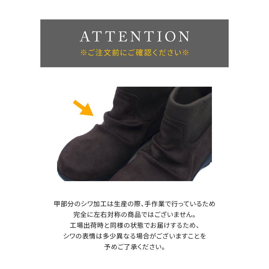 ほっこり感のあるリブニットにルーズな雰囲気のギャザー加工がお洒落なショートブーツ。