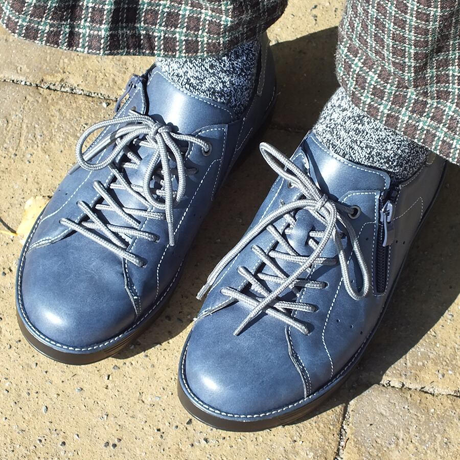 レースアップデザインに加え、内側にはサイドゴア、外側にはファスナーを付け、脱ぎ履きしやすく足にしっかりフィット。