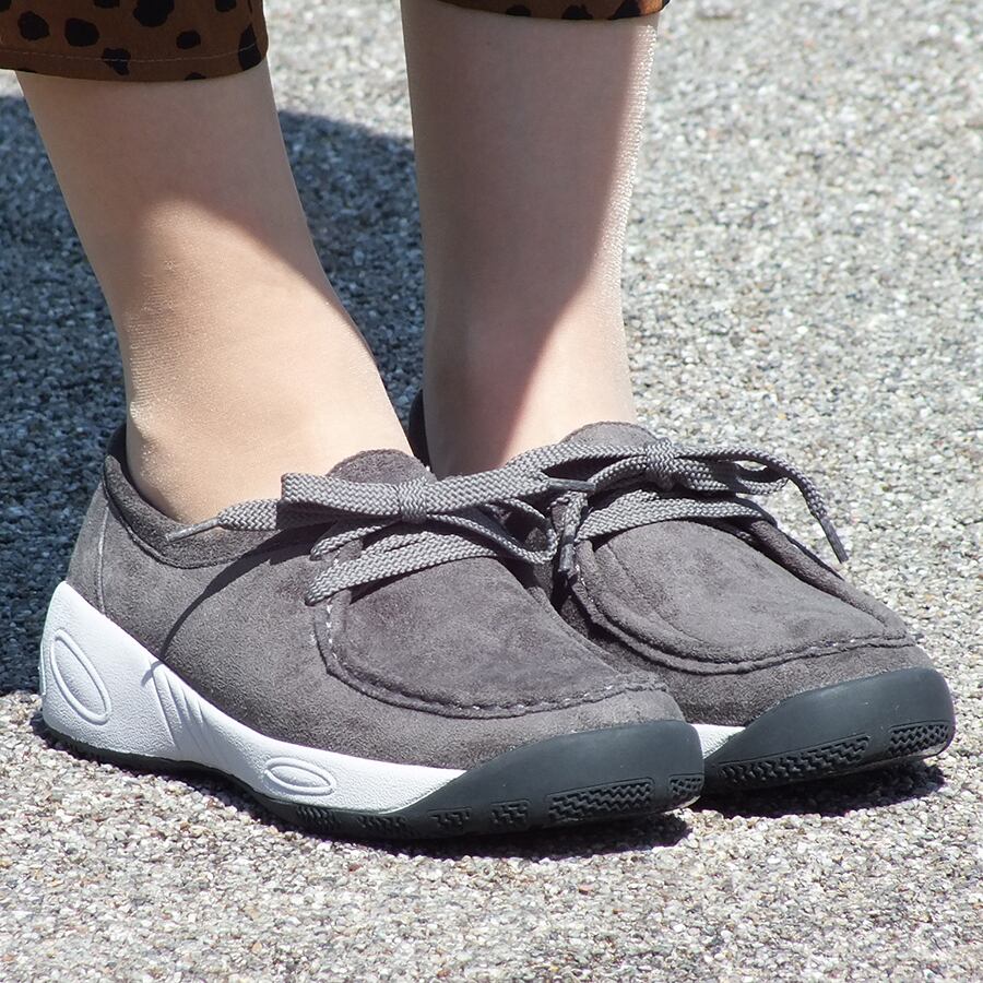 ウォーキングシューズのようなソールを合わせたワラビーシューズ。