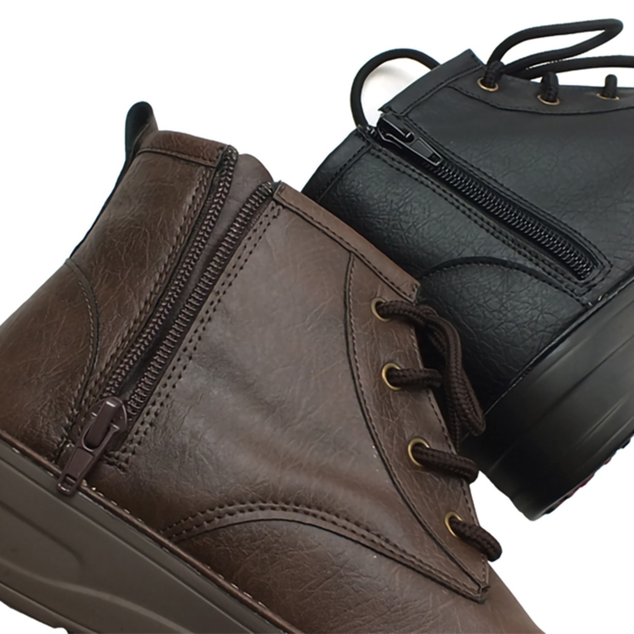 内側サイドのファスナーで脱ぎ履きラクラク。