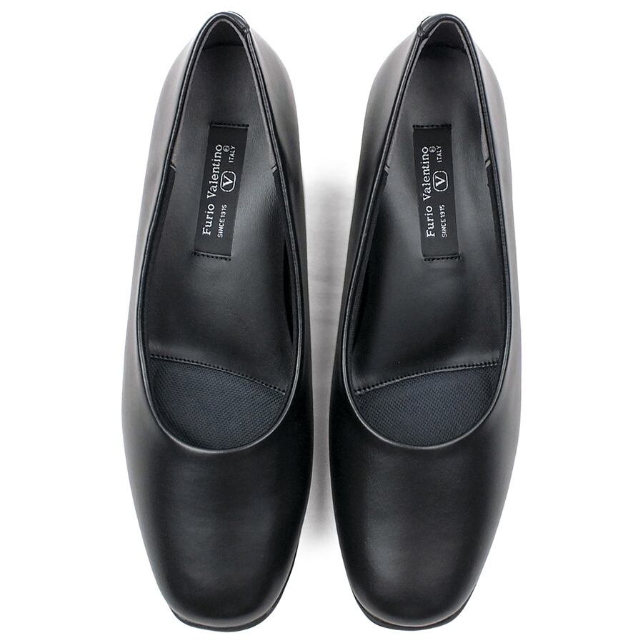 洗練されたフォルムと機能性のブラックフォーマルパンプス。