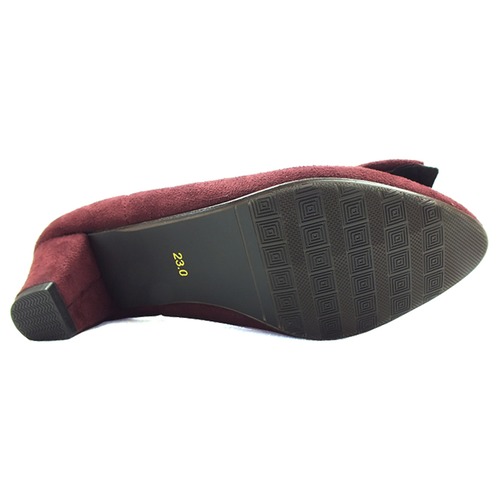 ビジューが輝くフロントリボンデザインのアーモンドトゥパンプス。