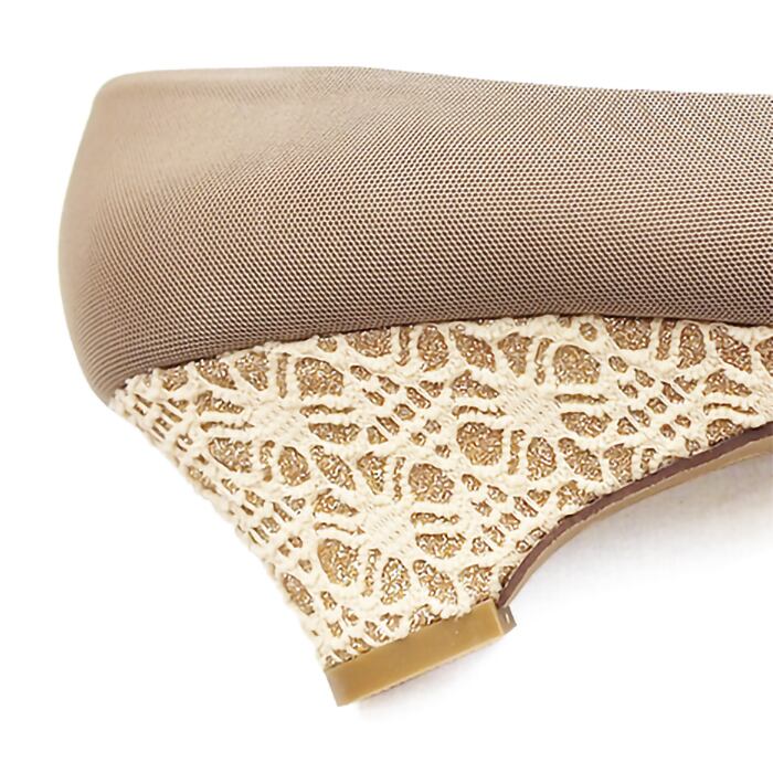 レース素材×ラメのウェッジソールが上品なラウンドトゥプレーンパンプス。