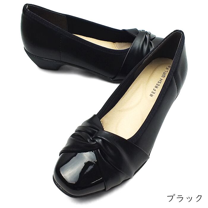 つま先の上品な結びリボンがオシャレなラウンドトゥパンプス。