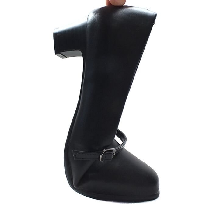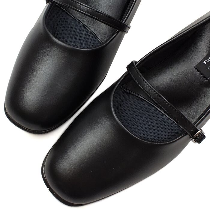 洗練されたフォルムと機能性のブラックフォーマルパンプス。