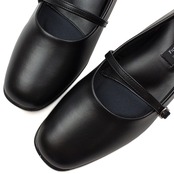足のラインをキレイに魅せるすっきりとしたスクエアトゥに高さ4.0cmヒールで美脚効果をプラス。
