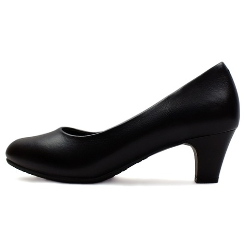 洗練されたフォルムと機能性のブラックフォーマルパンプス。