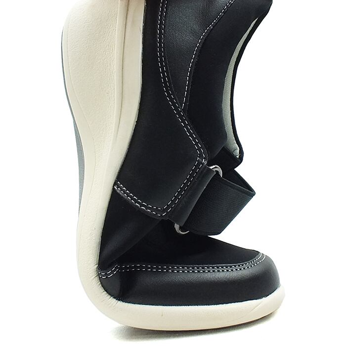 アッパーはフロントゴア+ベルトデザインで脱ぎ履きしやすく足にしっかりフィット。
