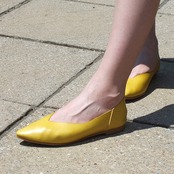 まるで本革のような風合いでシルエットが美しいアーモンドトゥパンプス。