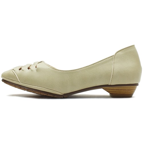 高さ2cmのローヒールは木目調プリントでナチュラルな風合いをプラス。
