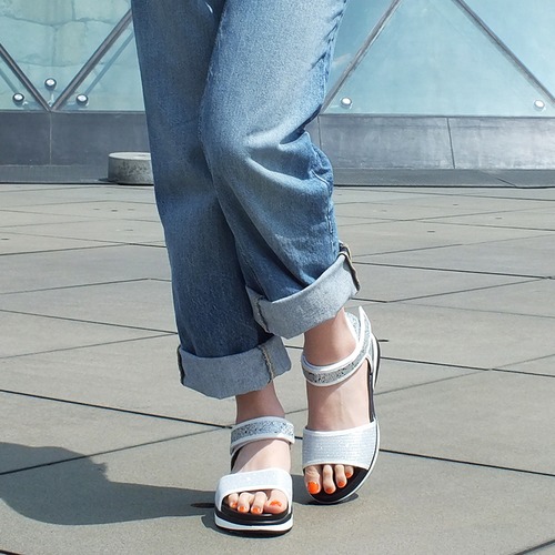 かかとを覆うフォルムなので脱げにくく、ストラップも太めなので安定感もあるのでしっかりとホールド感もあり歩きやすい。