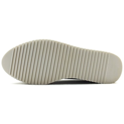白と黒のツートンカラーの厚底ソールで足元にボリューム感をプラスし、お洒落な足元を演出してくれるシンプルデザインの厚底レースアップシューズ。