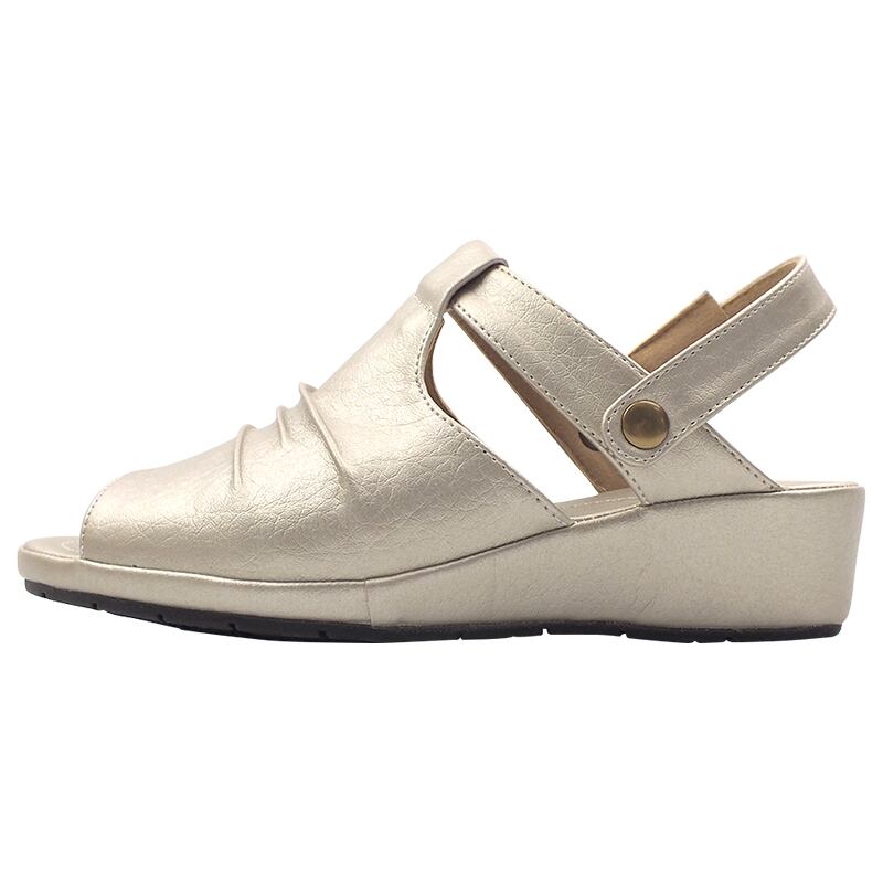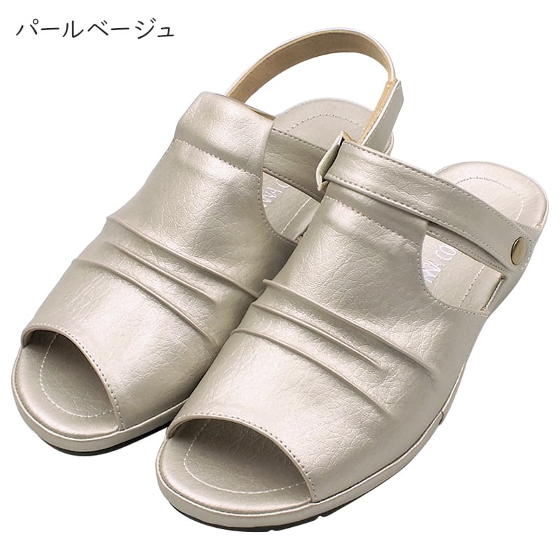 甲部分をしっかりと包み込み、ギャザー加工を施したちょっぴり大人のコンフォートサンダル。