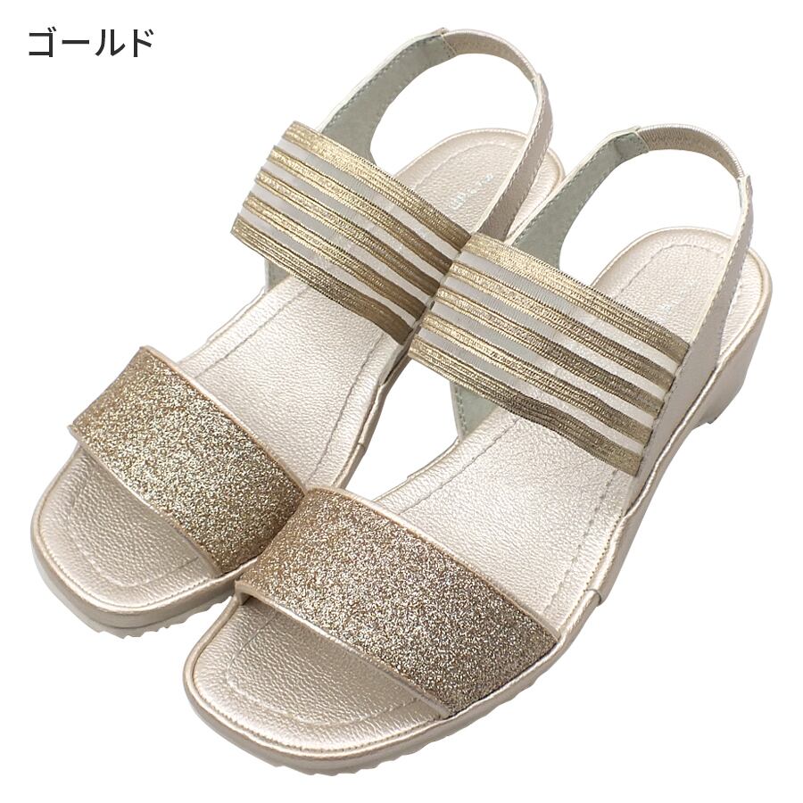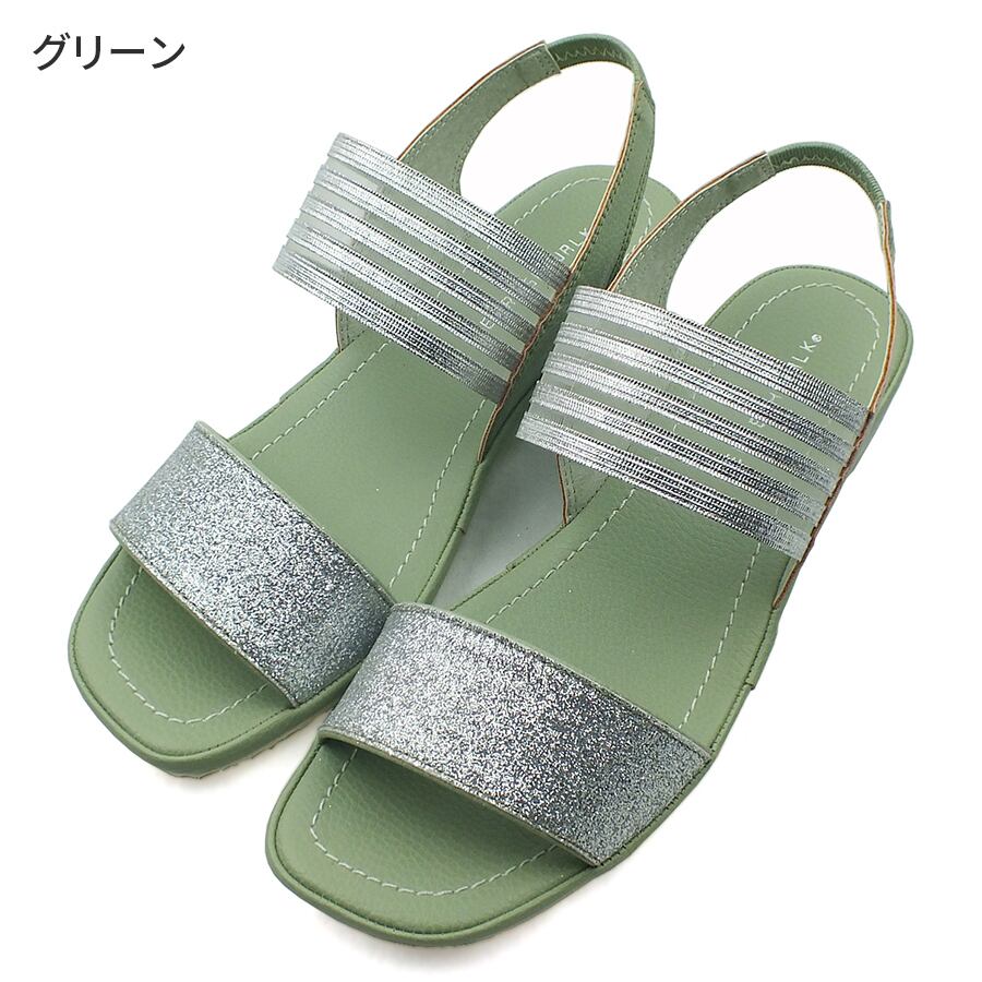 キラキラ光るラメ&チュール素材で夏らしい爽やかなデザインのコンフォートサンダル。