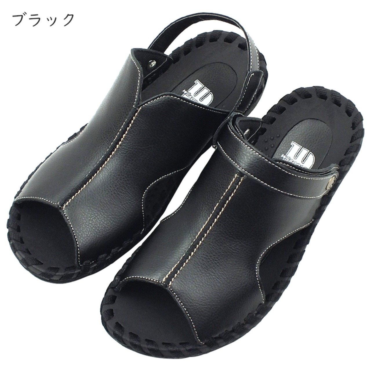 移動式の甲ストラップは前にずらせば多重ベルトの楽ちんミュール、後ろに移動させればバックストラップとしても使える2way仕様。