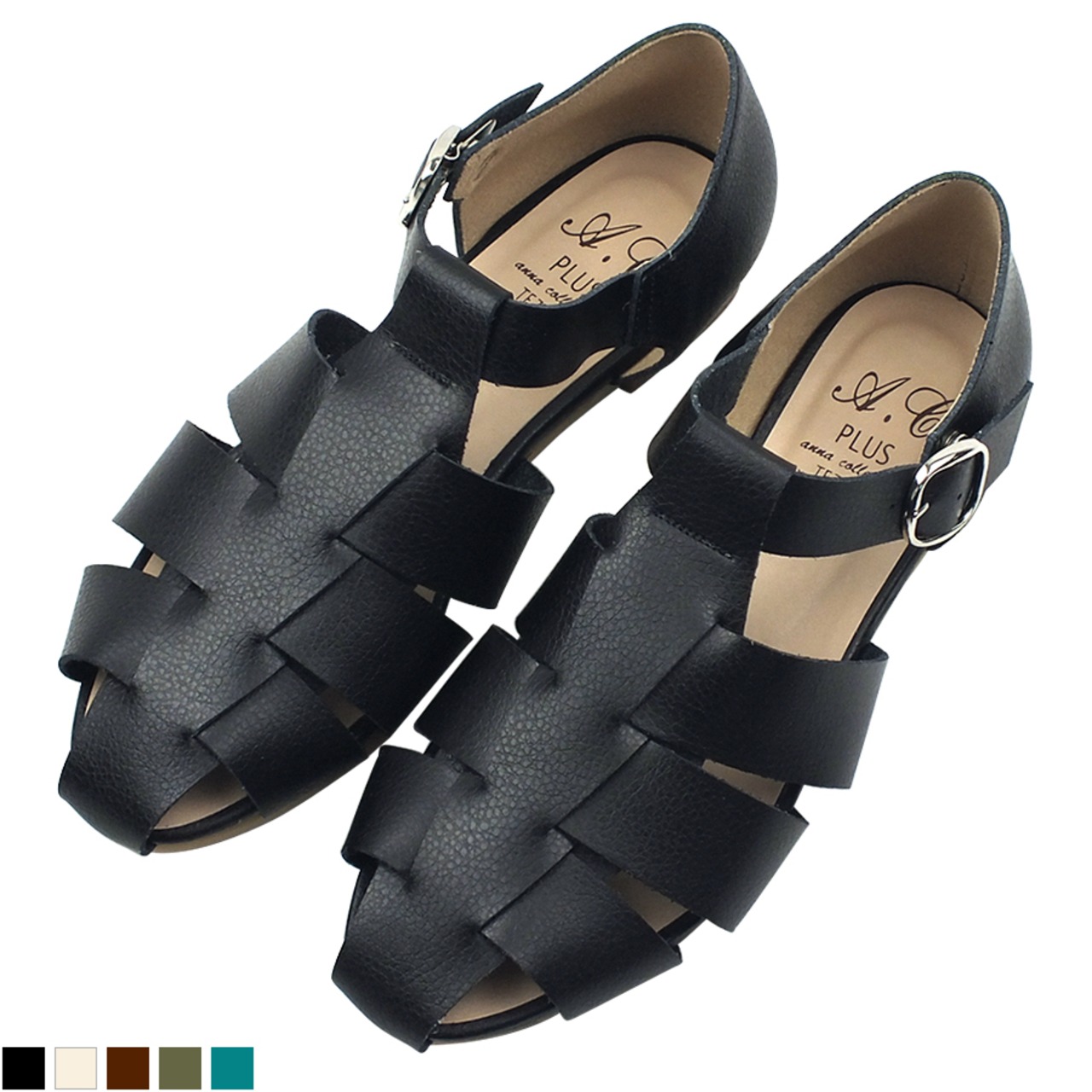 夏のコーディネートに欠かせない、アッパーが編み込みのデザインのカメサンダル。