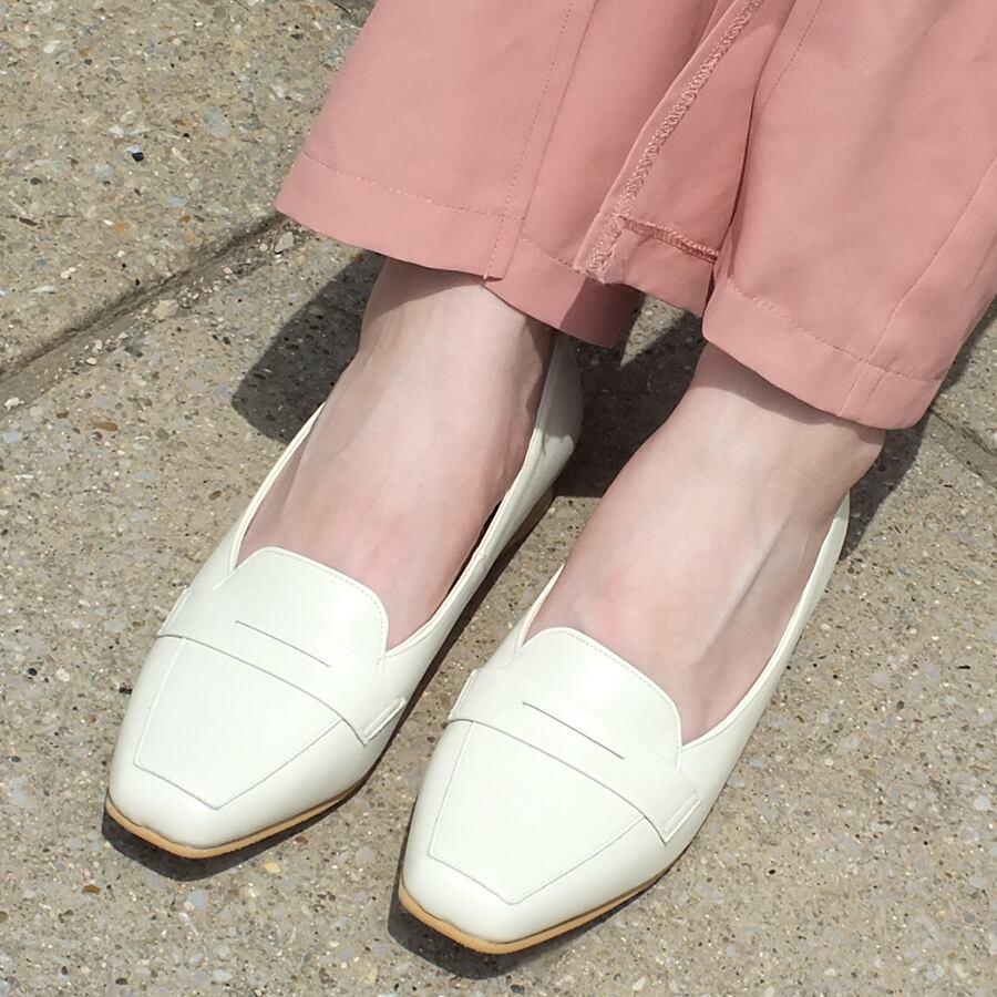 トラディショナルなローファースタイルに、ユニークなコインデザインを施し、個性を際立たせました。