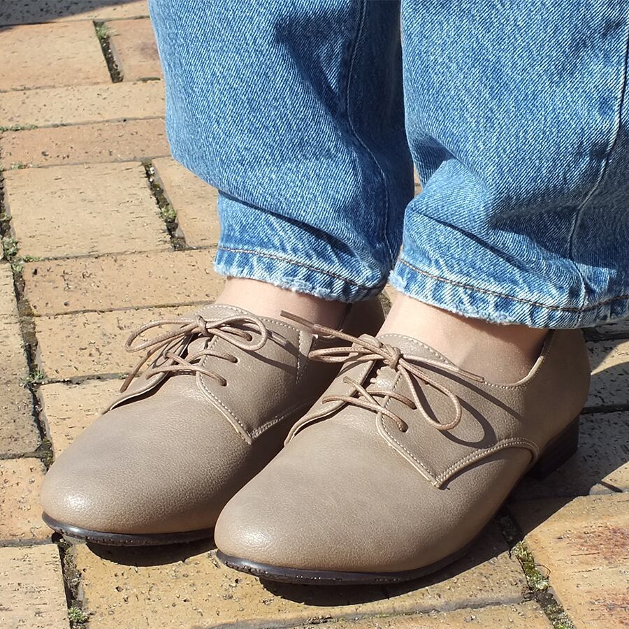 スマートなラウンドトゥに同色靴紐によるシンプルなレースアップデザイン。