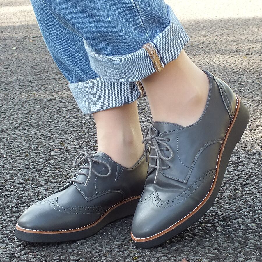 トレンドの厚底ソールで足元にボリューム感をプラス。