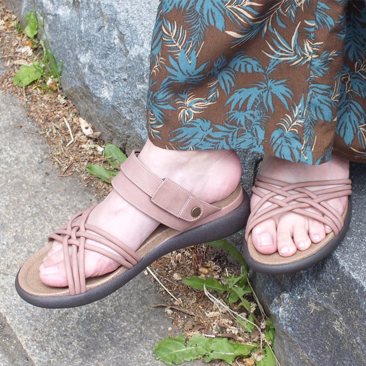 ストラップの付け根はゴムになっており伸縮性があるので脱ぎ履きしやすく足にしっかりフィットします。