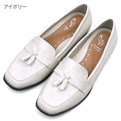 スクエアトゥでつま先部分に余裕があり、長時間履いても疲れにくいデザインです。