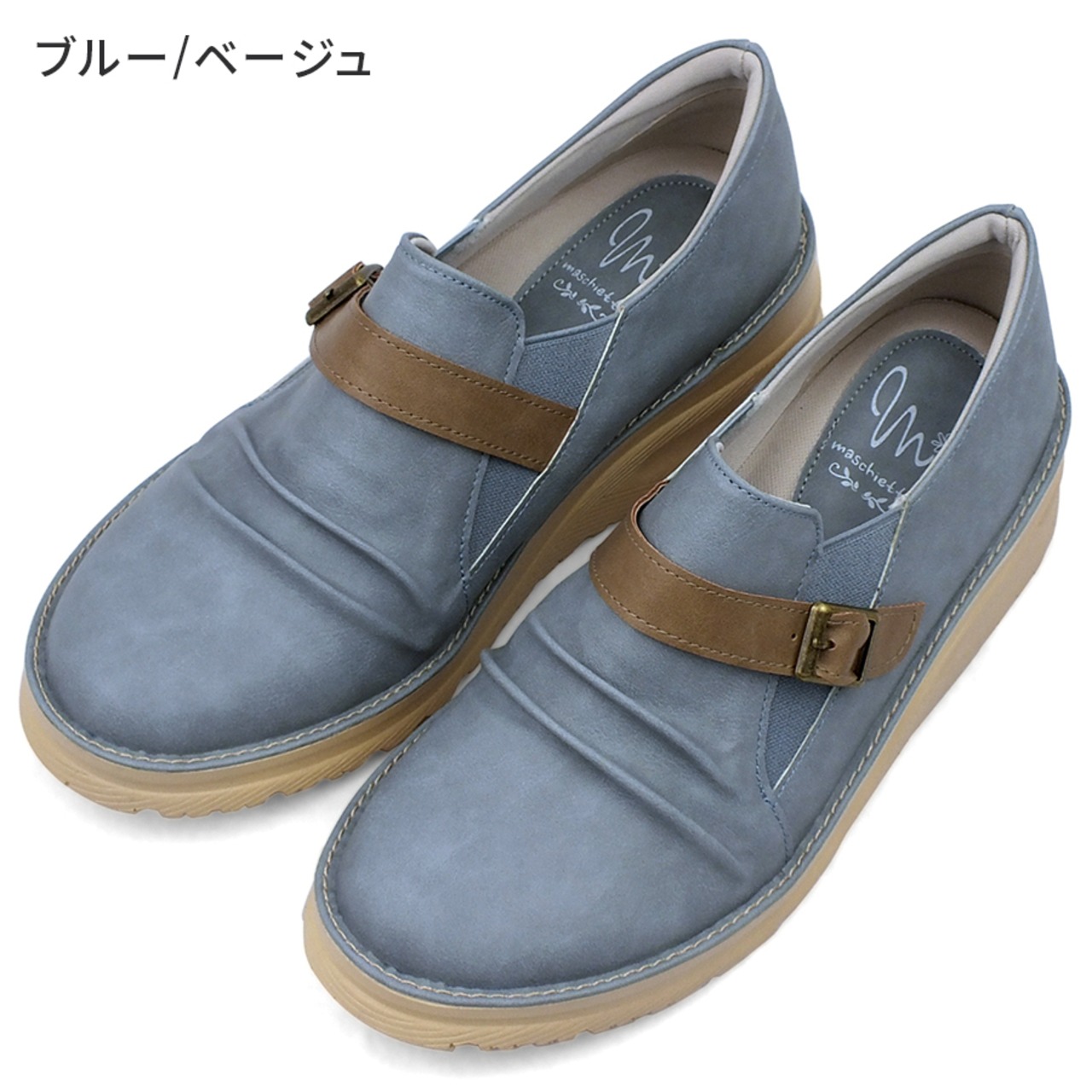 ギャザー加工にベルトを合わせたサイドゴアカジュアルシューズ。